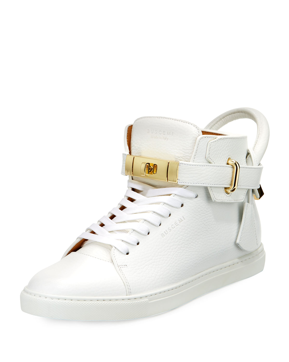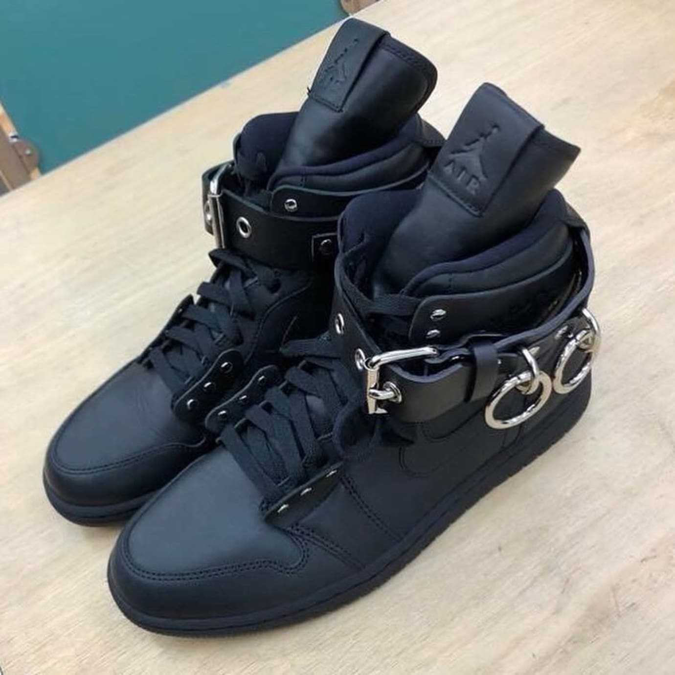 The shoe has a variety of alterations, most notably an extended tongue and large buckle strap added around the ankle. Decorative metal loops hang from the ankle collar and give the shoe a more regal appearance overall. Metal eyelet covers are also new additions to the forefoot and ankle eyelets. Finally, the clean single color leather upper is the finishing touch on this clean collaboration.