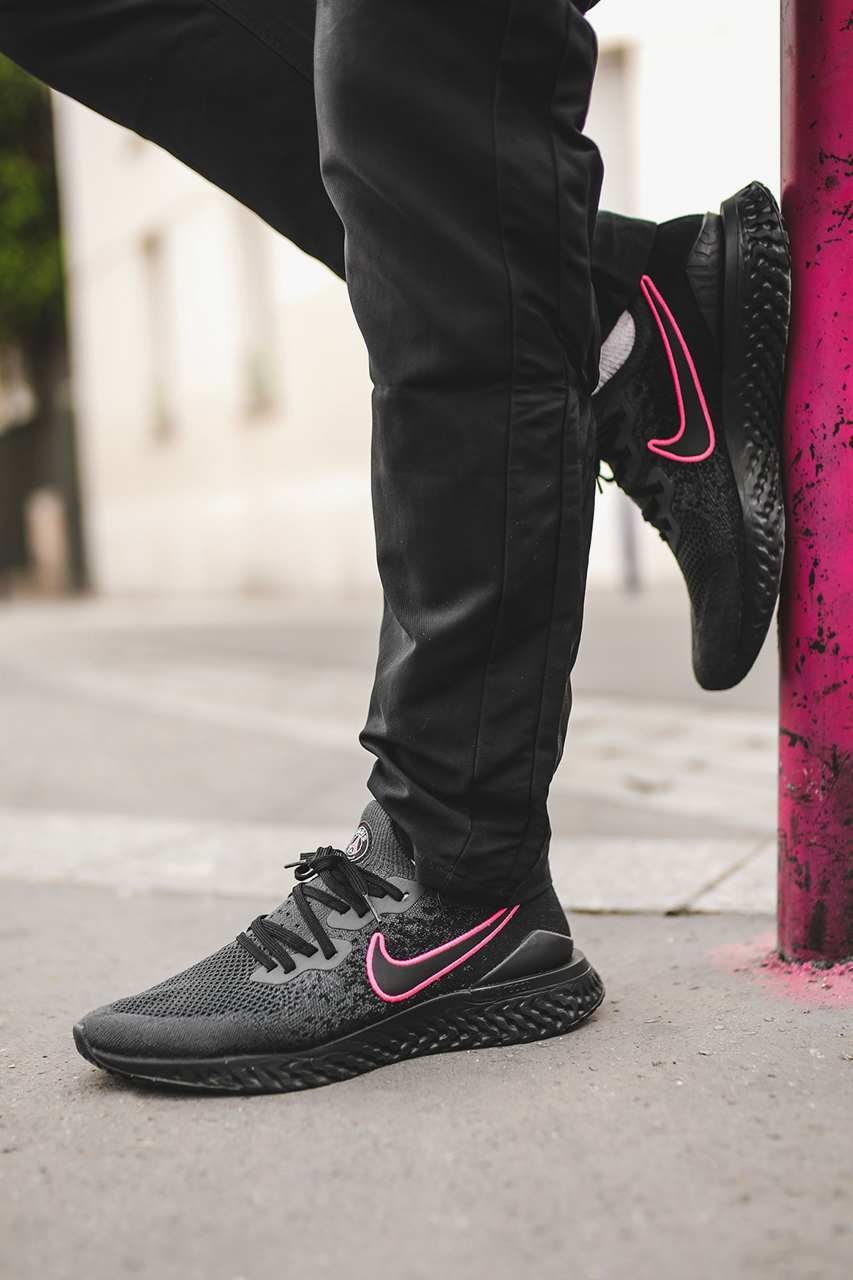 Both running and football lifestyles have been successfully blended into this collaborative silhouette, which sees almost the entirety of the model dressed in black. An eye-catching pink, paying homage to the team’s 2015/16 Champions League kit, outlines both the lateral and medial Swooshes, while PSG‘s club badge is proudly situated on both tongue tabs.