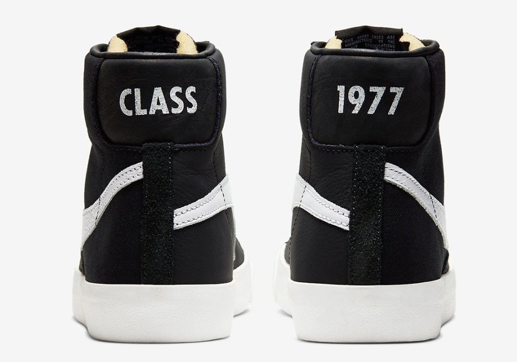 The original Slam Jam x Nike Blazer Mid “Class of 1977 featured a white base with black upside-down Swooshes. This time the colors are inverted, with black taking the leather and canvas base and white adorning the white leather Swooshes. Like the original, sponge and suede retain a vintage flair, and “Class” and “1977” are stitched into the heel-tabs.