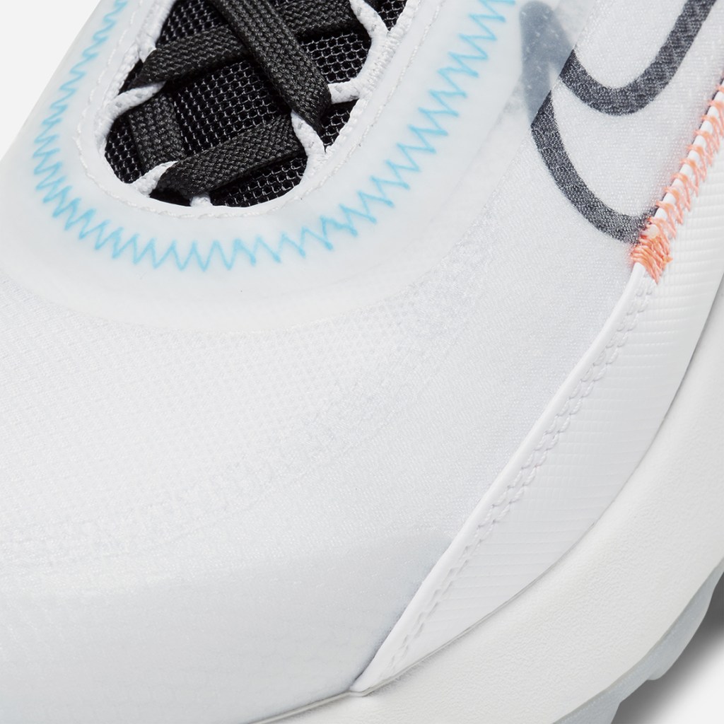 With those key components retained, Nike began infusing pieces of the future of footwear into its prized model. First, the Air bubble’s size is increased by 200 percent (think Air Max 270), adding new levels of comfort. The lacing system is updated, along with a bungee cord-type pull tab. While the design is similar, the forefoot grooving is also modified with reinforced tread and flexibility. The upper’s materials were slimmed down, with the use of darker colors to highlight the shoe’s support structure. The most supportive materials are 100 percent opaque, and the least supportive (and lighter weight) materials are see-through. Finally, the Air Max 2090 has a cropped Swoosh, a look that the brand has been increasingly employing since 2019. The shoe is finished off with highlighted stitching and the new ‘Air’ logo plastered on various parts of the shoe.
