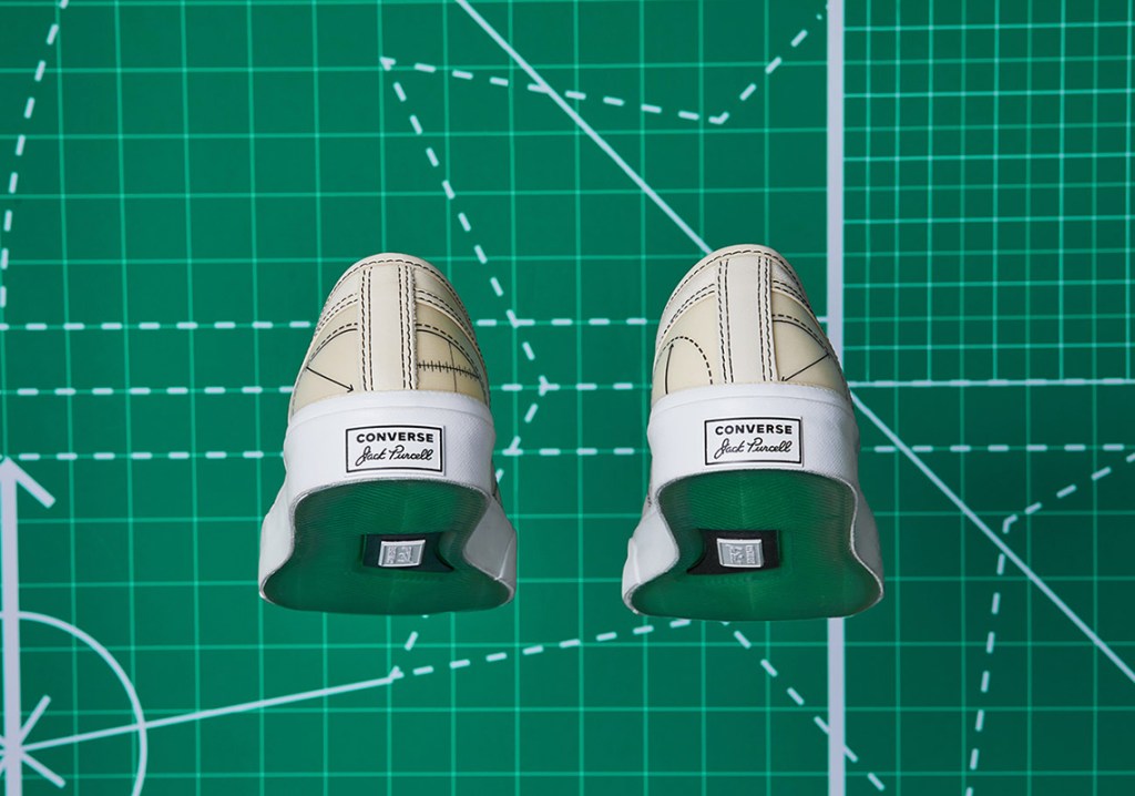 END. provides two unique colorways that both speak to the central theme of the planning stages of architectural design. The Chuck Taylor 1970 Hi comes in a black and white colorway, with the Jack Purcell dressed up in a natural ivory coating. Both sneakers are embellished with contrast stitching and printed grid patterns, representing a floor plan. Ensuring continuity between both styles, END. and Converse employed a semi-transparent TPU film across various portions of the uppers. Both shoes also feature co-branded insoles, translucent outsoles with emerald green pop within, and finally emerald green boxes that match the sneaker’s outsoles and upper print patterns.